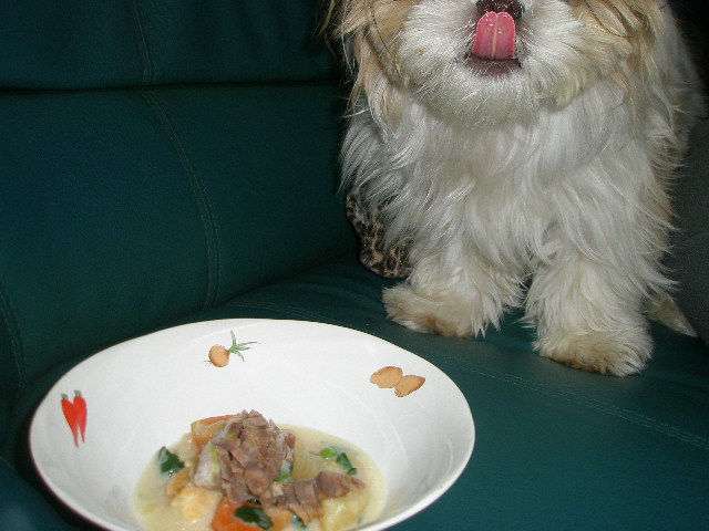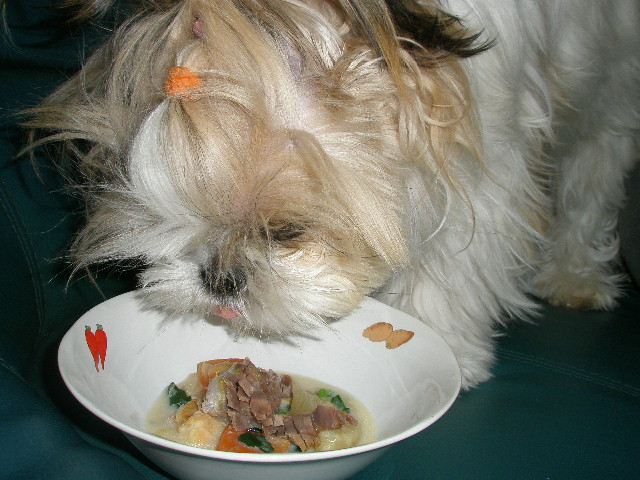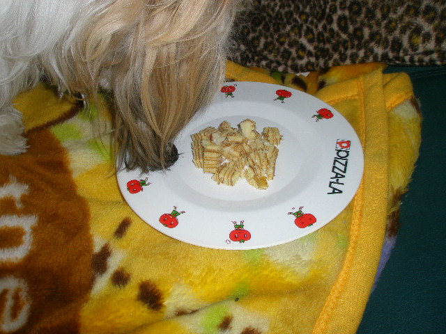 拓用にはわんこパスタを熱湯でもどして添えて・・