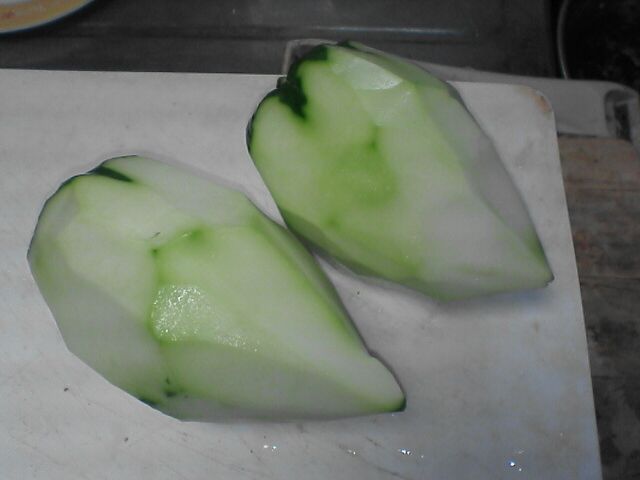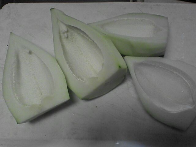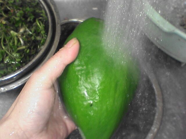 パパイヤには、ビタミンAやC、鉄分が多く含まれ、蛋白質分解酵素のパパインや整腸作用のあるペクチンも含んでいる。沖縄の家庭料理としてよく食べられているらしい・・、、