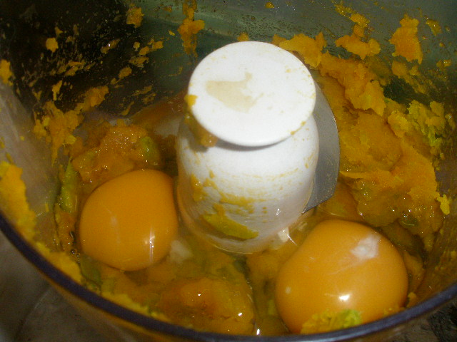 ホットケーキMIXの中に南瓜のペースト入れたやつ。