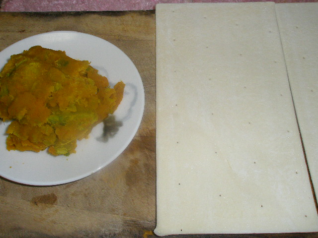 南瓜ペーストをパン生地>(←クリック♪してね)