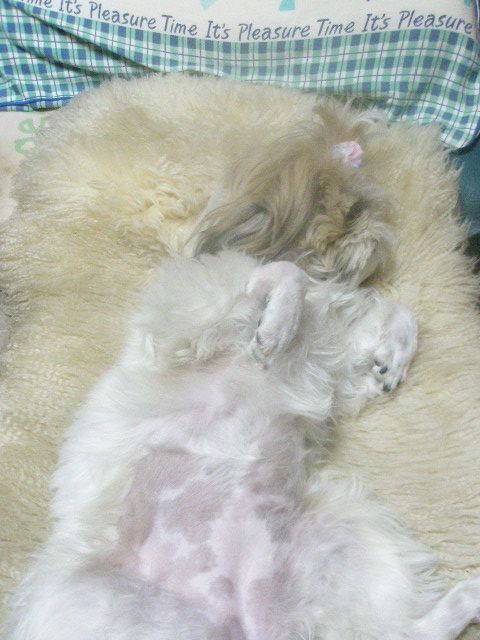 >ムートンの上で拓美ちゃん気持ちよさそう。