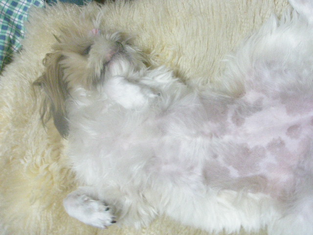 ムートンの上で拓美ちゃん気持ちよさそう。