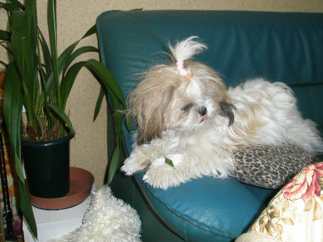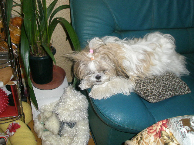 サスケ、サラのお尻クンクン、変だなって思ったら肛門さんから長い葉っぱが生えていたわ(汗)拓美ちゃん、よく噛んで食べてね(笑)今朝リキままさんからバレンタインのお返し貰ったわ。