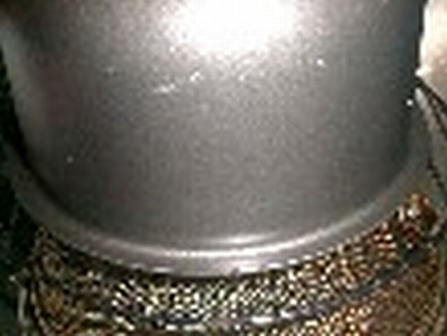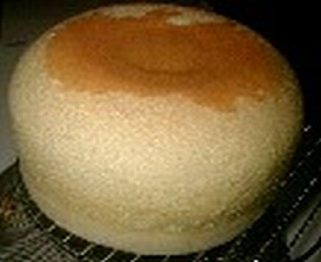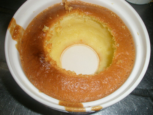 7. 焼き上がりは、ケーキの真ん中が内ぶたにくっ付く位まで膨らむので、内ぶたに薄くサラダ油を塗っておくとよい。