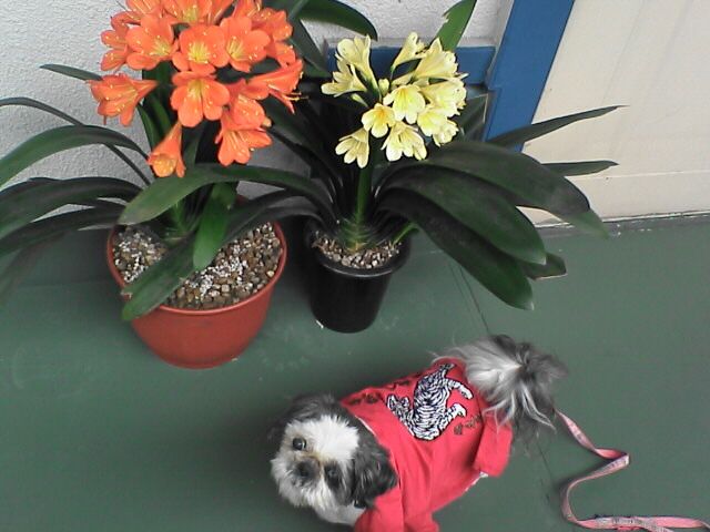 >まだまだ桜も君子蘭も頑張ってますね=3