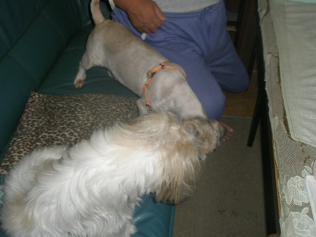ワンコ用に室温にもどしたクリームチーズに黄な粉を混ぜた物を塗り巻いてさます。